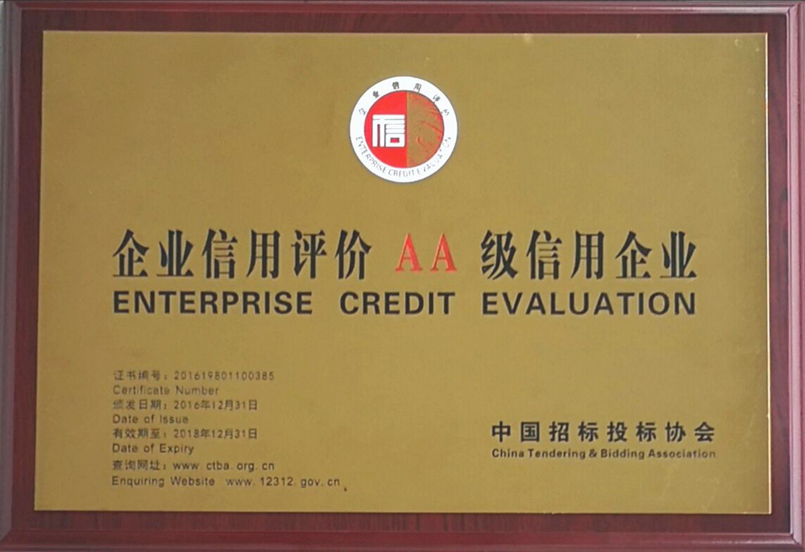 企業(yè)信用評(píng)價(jià)AA級(jí)信用企業(yè)